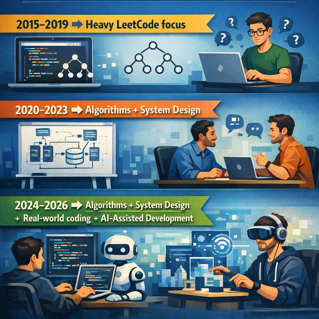 | 2020–2023 | System Design (The “Scale Era”) | Cloud-Native Complexity: As microservices, distributed systems, and large-scale cloud infrastructure became the norm, algorithm puzzles alone were insufficient. Engineers needed to understand databases, caching, architecture trade-offs, and how to design systems that scale without breaking. |